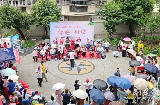 攤位前方,濠塘社區(qū)“藝家協(xié)會(huì)”的文藝志愿者們?yōu)榇蠹規(guī)?lái)了精彩紛呈的節(jié)目,京劇《紅燈記》、《沙家浜》喚起居民的紅色記憶,小品《老倆口逛鄂州》帶大家回顧了鄂州的發(fā)展巨變,贏(yíng)得大家陣陣掌聲。
