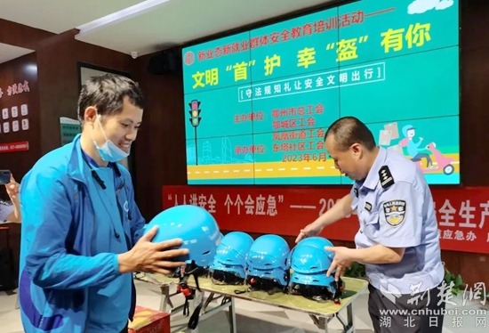荊楚網(wǎng)(湖北日?qǐng)?bào)網(wǎng))訊(通訊員 胡木莉)6月13日上午,在鄂城區(qū)鳳凰街道東塔社區(qū)新時(shí)代文明實(shí)踐站,“文明‘首’護(hù),幸‘盔’有你”主題關(guān)心關(guān)愛(ài)新業(yè)態(tài)新就業(yè)群體“送平安·送清涼”活動(dòng)如期舉行?;顒?dòng)由鄂州市總工會(huì)、鄂城區(qū)工會(huì)、鳳凰街道工會(huì)主辦,鳳凰街道東塔社區(qū)工會(huì)聯(lián)合會(huì)承辦。
