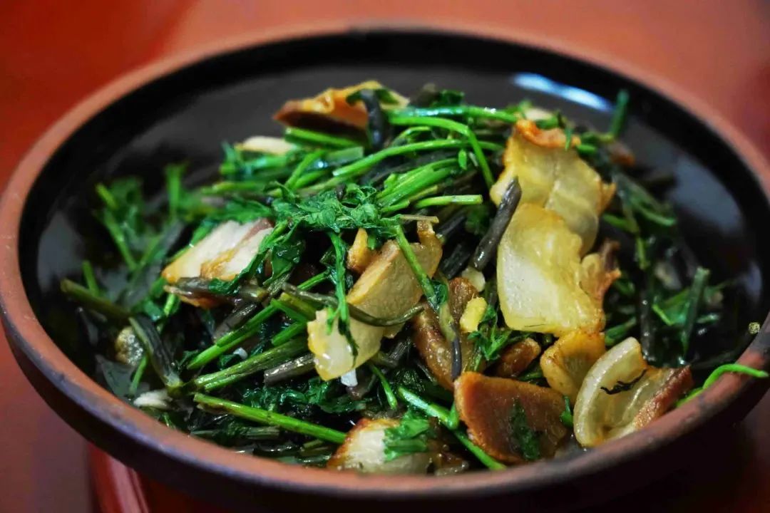 一道鮮嫩的地皮菜炒土雞蛋