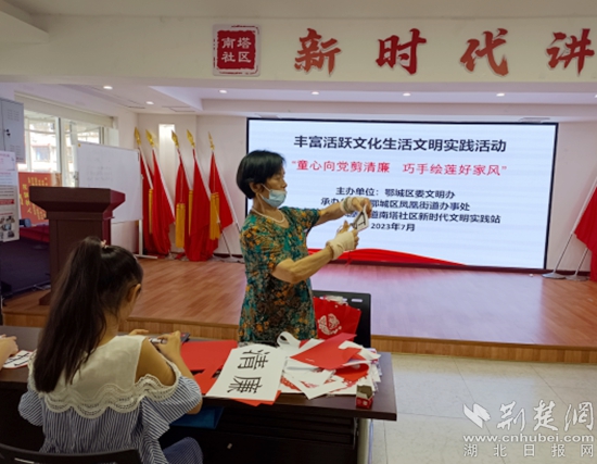 荊楚網(wǎng)(湖北日?qǐng)?bào)網(wǎng))訊(通訊員 丁元中)一刀一剪揚(yáng)正氣,一毫一厘頌清風(fēng)。7月12日上午,鄂城區(qū)鳳凰街道南塔社區(qū)聯(lián)合鄂州市婦聯(lián)、鄂城區(qū)婦聯(lián)、鳳凰街道婦聯(lián)開(kāi)展了“童心向黨剪清廉,巧手繪蓮好家風(fēng)”剪紙活動(dòng),將廉政素材與傳統(tǒng)剪紙相結(jié)合,用民俗藝術(shù)展現(xiàn)清廉之風(fēng)。