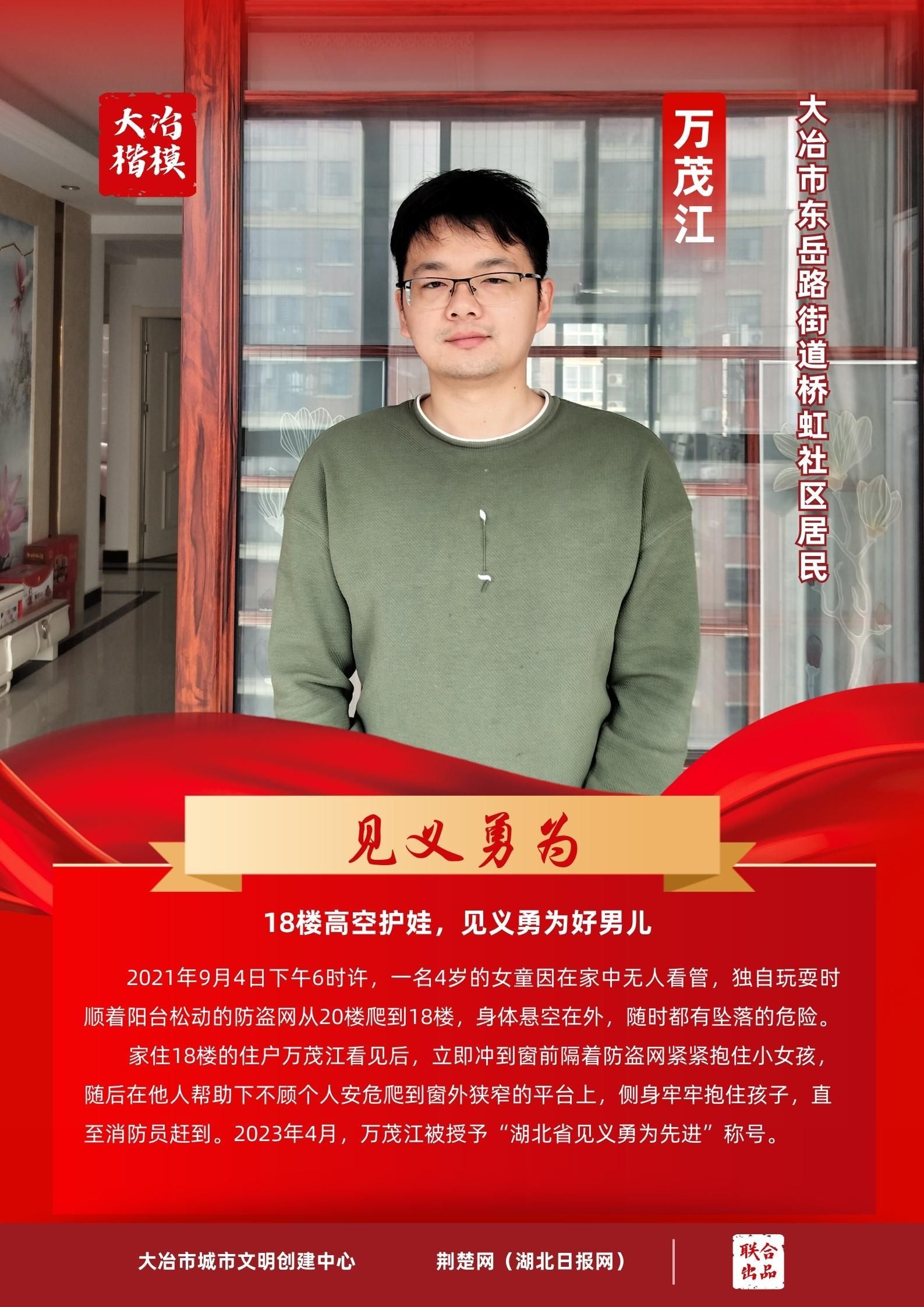 荊楚網(wǎng)(湖北日報網(wǎng))訊(記者 左乙辰 通訊員 姚昭、羅成)以楷模為鏡,與好人同行。近日,2023上半年大冶楷模(好人)名單發(fā)布,王有文、許利、吳博等10人上榜,用各自的感人事跡溫暖了千年銅都,引領著城市的文明風尚。