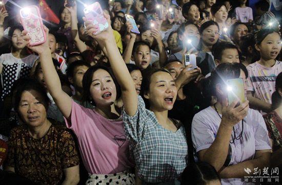傍晚,華燈初上,匡河小學(xué)籃球場熱鬧非凡,球場周圍群眾揮舞著國旗,喜笑顏開,加油聲、喝彩聲一浪高過一浪。