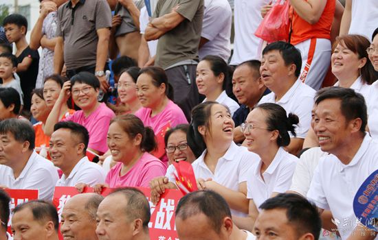 “心中有丘壑,眉目作山河,山河,既是三個(gè)村的名字組合,又取自‘湖光山色,至善匡河’?!?9時(shí)30分許,開幕式開始,主持人依次介紹參賽隊(duì)伍,伴隨著激昂的旋律,運(yùn)動(dòng)員、裁判員精神抖擻進(jìn)入會(huì)場,現(xiàn)場觀眾用熱烈的掌聲歡迎他們的到來。