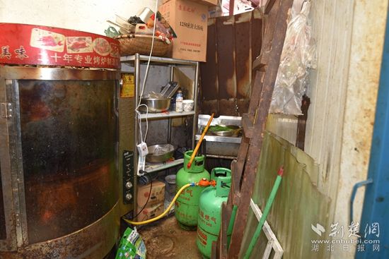 一天前,黃石港區(qū)消防救援大隊在對轄區(qū)一農(nóng)貿(mào)市場開展消防安全檢查時,發(fā)現(xiàn)該市場熟食區(qū)經(jīng)營門面系泡沫彩鋼板搭建。此外,在一家泡沫彩鋼板搭建的烤鴨店內(nèi),監(jiān)督員還發(fā)現(xiàn)店內(nèi)兩瓶液化氣鋼瓶就緊挨著正在運行的烤爐擺放,未保持安全間距。