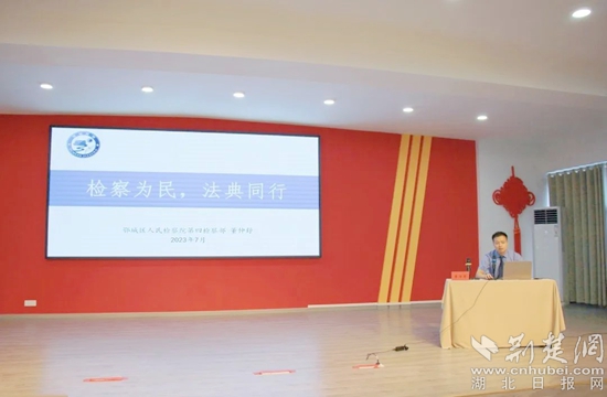 荊楚網(wǎng)(湖北日報網(wǎng))訊(通訊員丁元中)近日,由鄂城區(qū)檢察院、鄂州楚商聯(lián)合會聯(lián)合舉辦的主題為《檢察為民,法典同行》的“法治講堂進(jìn)社區(qū)活動”在鄂州市鄂城區(qū)鳳凰街道濱湖社區(qū)拉開帷幕,活動吸引了60余名社區(qū)居民前來聆聽。