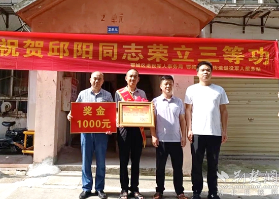 荊楚網(wǎng)(湖北日報網(wǎng))訊(通訊員丁元中)7月26日上午,鄂城區(qū)退役軍人事務(wù)局副局長陳海鵬一行到鳳凰街道濱湖社區(qū)為榮立三等功的現(xiàn)役軍人邱陽家人送去立功喜報和慰問金,為他們送上黨和政府的親切關(guān)懷。