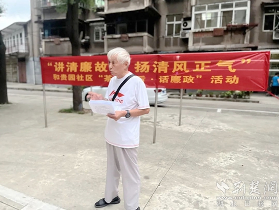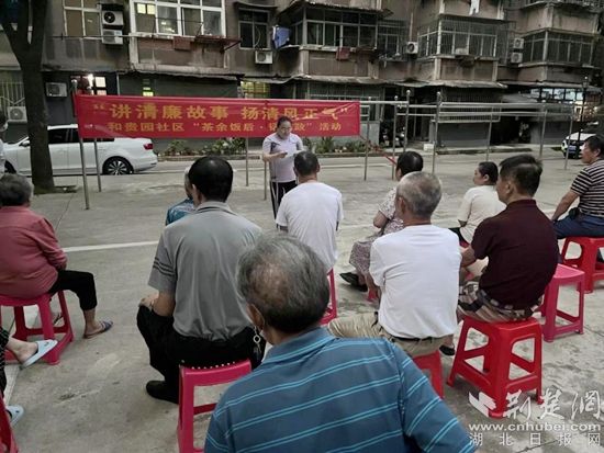 傍晚時分,身處湖濱花園小區(qū)的“和悠然 慢生活”休閑廣場,第二黨支部書記呂培根分享了《留得清氣滿乾坤》廉潔故事匯中的周恩來廉潔自律的故事。他勸誡領導干部們,要想成功度過思想、政治、社會、親屬和生活的五道關口,就必須堅守共產(chǎn)黨員的政治操守和優(yōu)良作風。