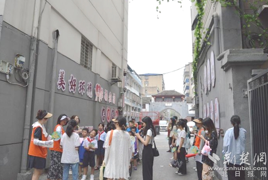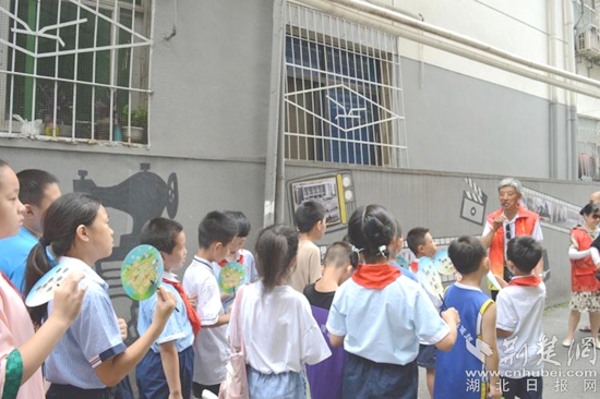早上9時,大家來到老公安局小區(qū)歷史文化長廊研學(xué)點,小朋友們在社工的帶領(lǐng)下井然有序地聽取“紅領(lǐng)巾”小小講解員張景婷講述著“老公安局小區(qū)是古樓街歷史上繁華的一個商業(yè)中心,曾經(jīng)在明朝和清朝兩代570多年,這里是武昌縣衙門的所在地......”的歷史,大家仿佛看見了那個熱火朝天的時代。