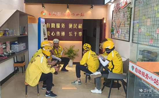 外賣小哥在暖“新”驛站休息。通訊員 供圖