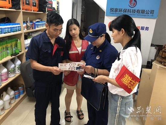 在西塞山區(qū),消防人員走進(jìn)沿街門面開(kāi)展消防安全檢查宣傳?!疤鞖庋谉?,用電量劇增,請(qǐng)不要私拉亂接線路、超負(fù)荷用電,要經(jīng)常檢查線路敷設(shè)是否完好?!毕廊藛T一邊檢查,一邊提醒商戶要經(jīng)常開(kāi)展消防隱患自查自改,同時(shí)要熟練掌握滅火器、消火栓等器材使用方法。下陸區(qū)消防救援大隊(duì)結(jié)合夏季高溫防火特點(diǎn),整合戶外大屏、社會(huì)單位LED屏幕等社會(huì)資源循環(huán)播放夏季防火提示公告、高溫防火提示,提醒廣大人民群眾規(guī)范用火、用氣、用電。
