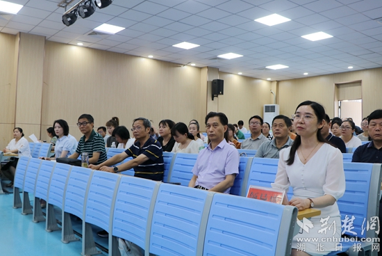 8月16日上午,黃石八中總校長(zhǎng)、特級(jí)教師、正高級(jí)教師郭茂榮作題為《務(wù)教育之本 悟成長(zhǎng)之道—教師工作坊建設(shè)的實(shí)踐與思考》的主題講座。他通過(guò)成長(zhǎng)經(jīng)歷和典型案例,運(yùn)用風(fēng)趣的語(yǔ)言深刻詮釋了“立德樹(shù)人是教育之本,知其心是教師之本,悟其道是成長(zhǎng)之要”,還交流了教師工作坊建設(shè)、運(yùn)行、管理、評(píng)價(jià)等方面的經(jīng)驗(yàn)。