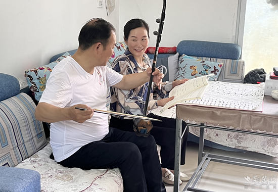 “這句詞應(yīng)該這么唱……你這個(gè)節(jié)拍錯(cuò)了……”清晨常常成為夫妻倆相互“切磋”的時(shí)光。為保證宣講效果,田志剛夫妻利用閑暇時(shí)光練習(xí)宣講詞、控制好快板的力度和鼓點(diǎn)節(jié)奏,也會(huì)在一起唱唱黃梅戲、拉拉二胡、跳跳舞。