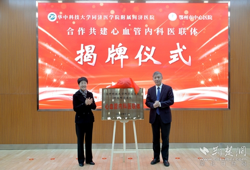 荊楚網(wǎng)(湖北日報網(wǎng))訊(通訊員 高曉東 潘?。?1月16日,鄂州市中心醫(yī)院心內(nèi)科與華中科技大學(xué)同濟(jì)醫(yī)學(xué)院附屬同濟(jì)醫(yī)院心內(nèi)科合作共建“心血管內(nèi)科醫(yī)聯(lián)體”簽約揭牌儀式在市中心醫(yī)院學(xué)術(shù)報告廳舉行。