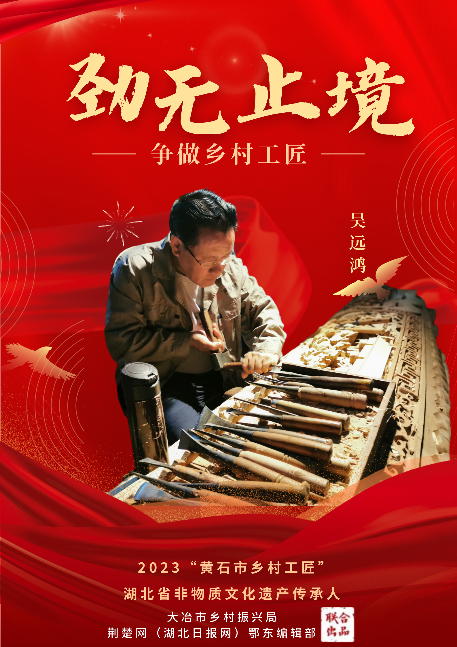 日前,黃石市鄉(xiāng)村振興局聯(lián)合相關(guān)部門下發(fā)《關(guān)于認定2023年度黃石市“鄉(xiāng)村工匠”的通報》,大冶市劉小紅、尹國安、吳遠鴻、紀道育等4人獲評“黃石市鄉(xiāng)村工匠”榮譽稱號。