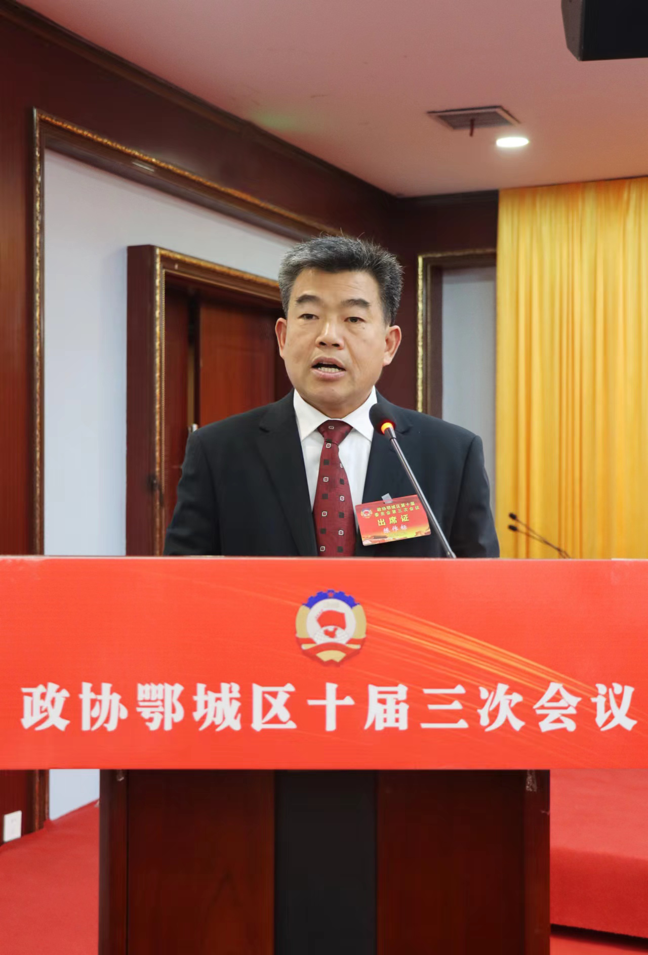 鄂城區(qū)政協(xié)主席楊光榮代表政協(xié)鄂城區(qū)第十屆委員會常務委員會作工作報告。胡小軍 攝