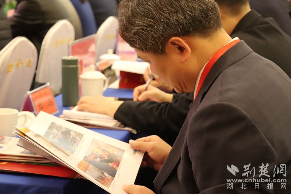與會代表翻閱工會五年畫冊。阮瓊 攝