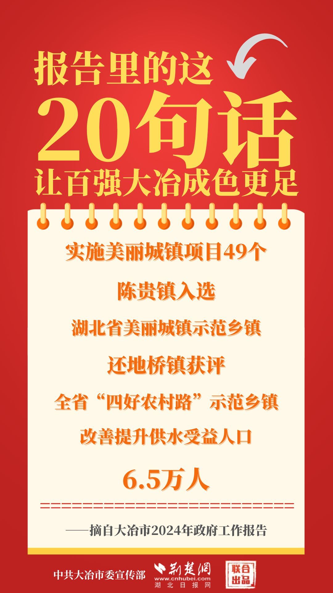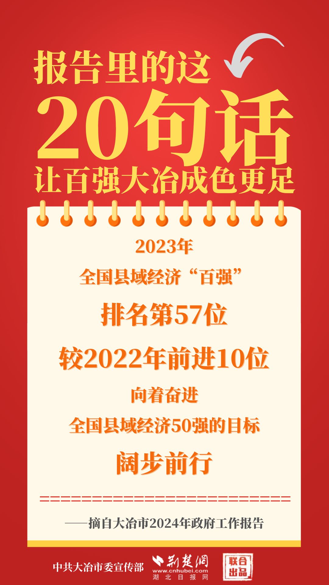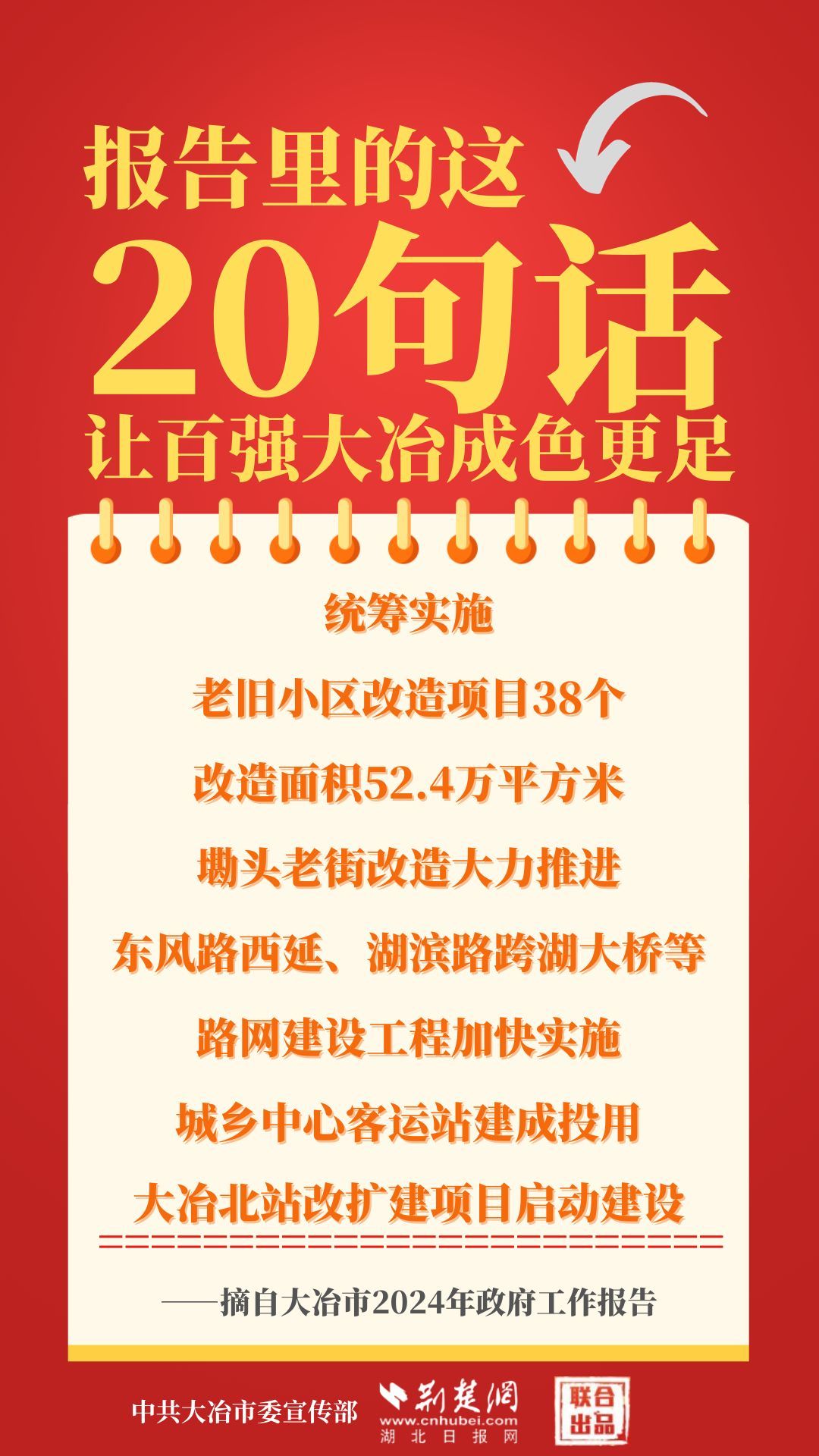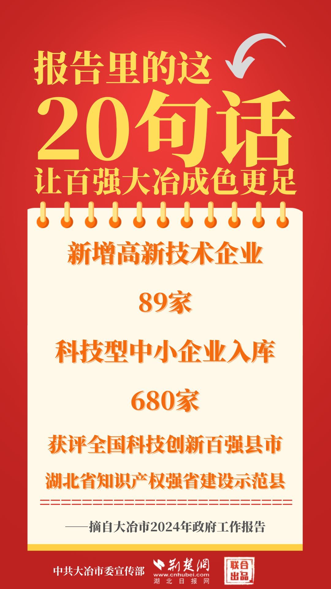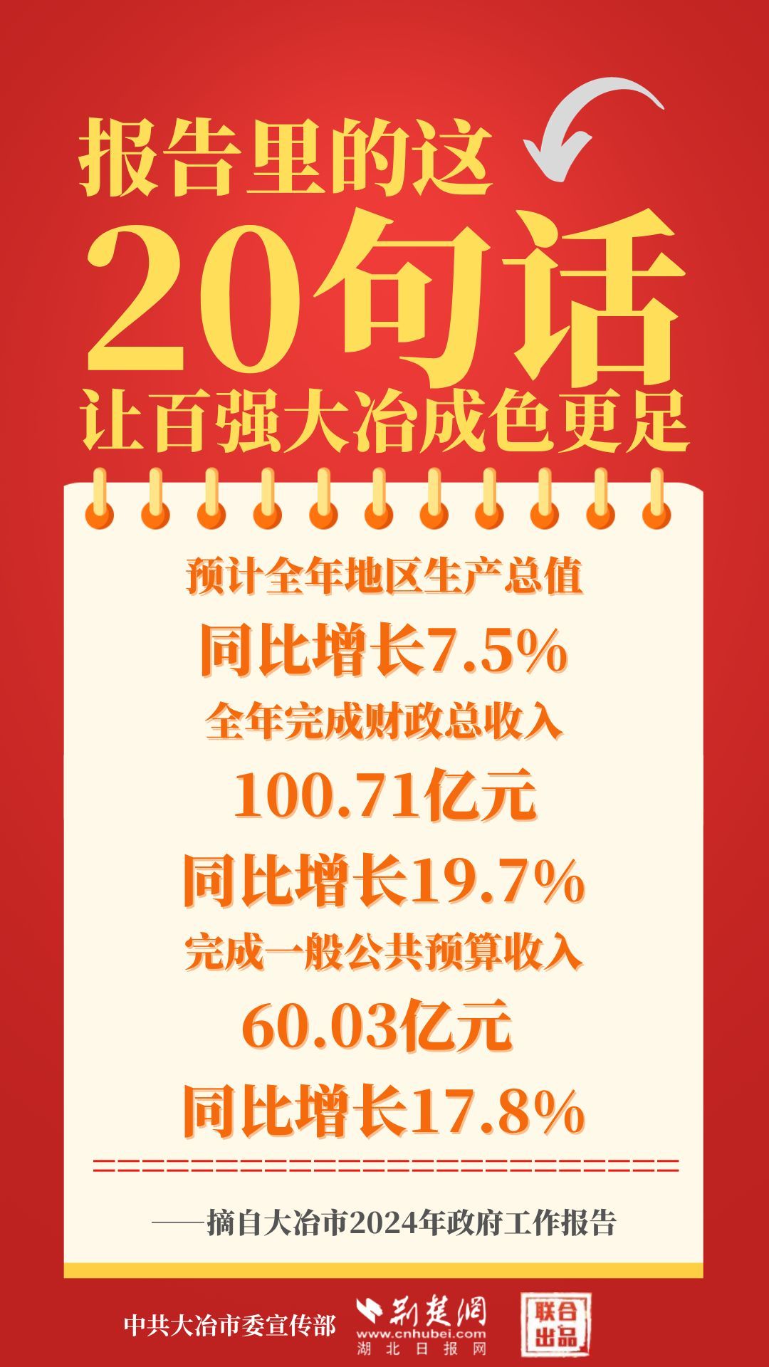 1月12日,大冶市第七屆人民代表大會第四次會議開幕,大冶市委副書記、市長孫輒作政府工作報(bào)告。報(bào)告里的這20句話,讓百強(qiáng)大冶成色更足。