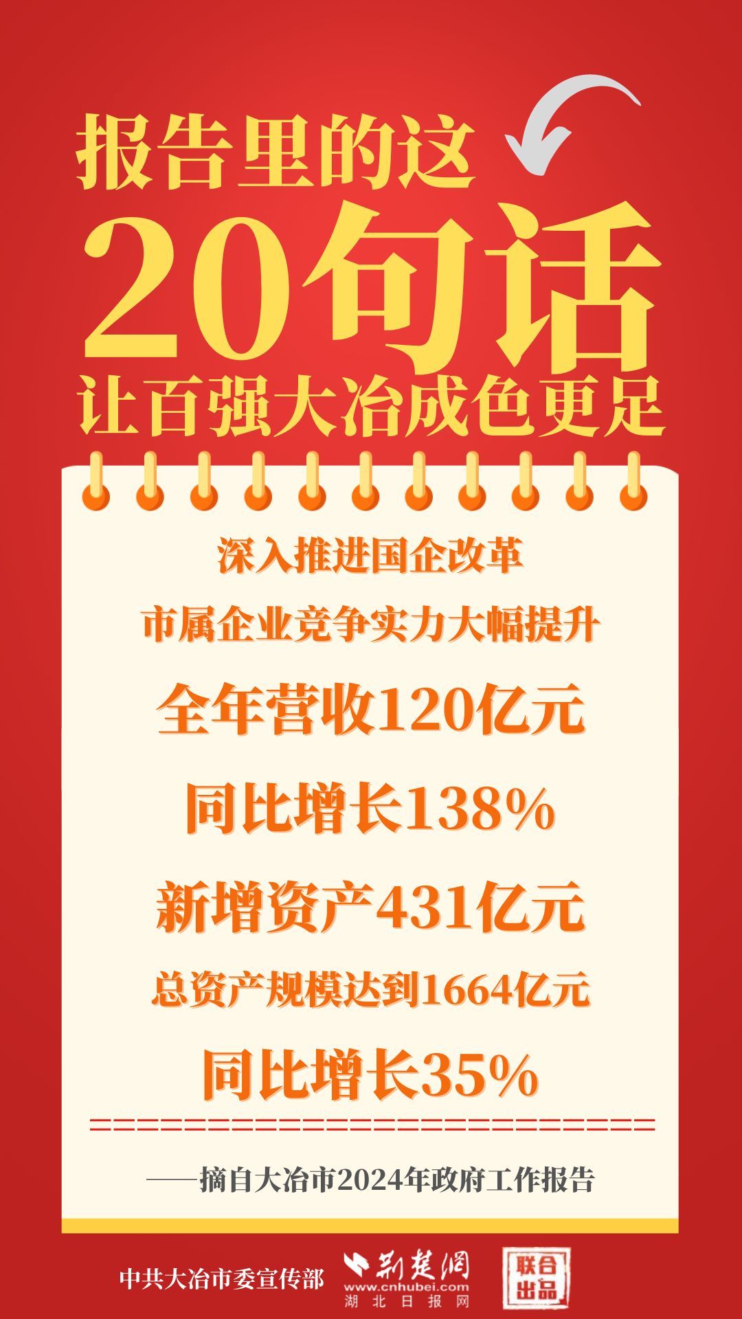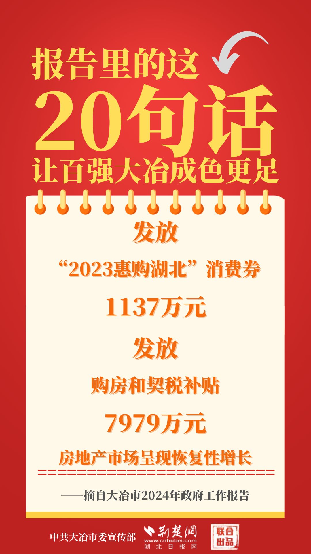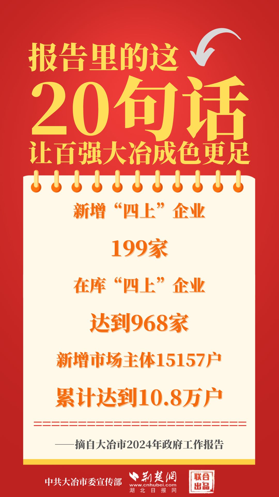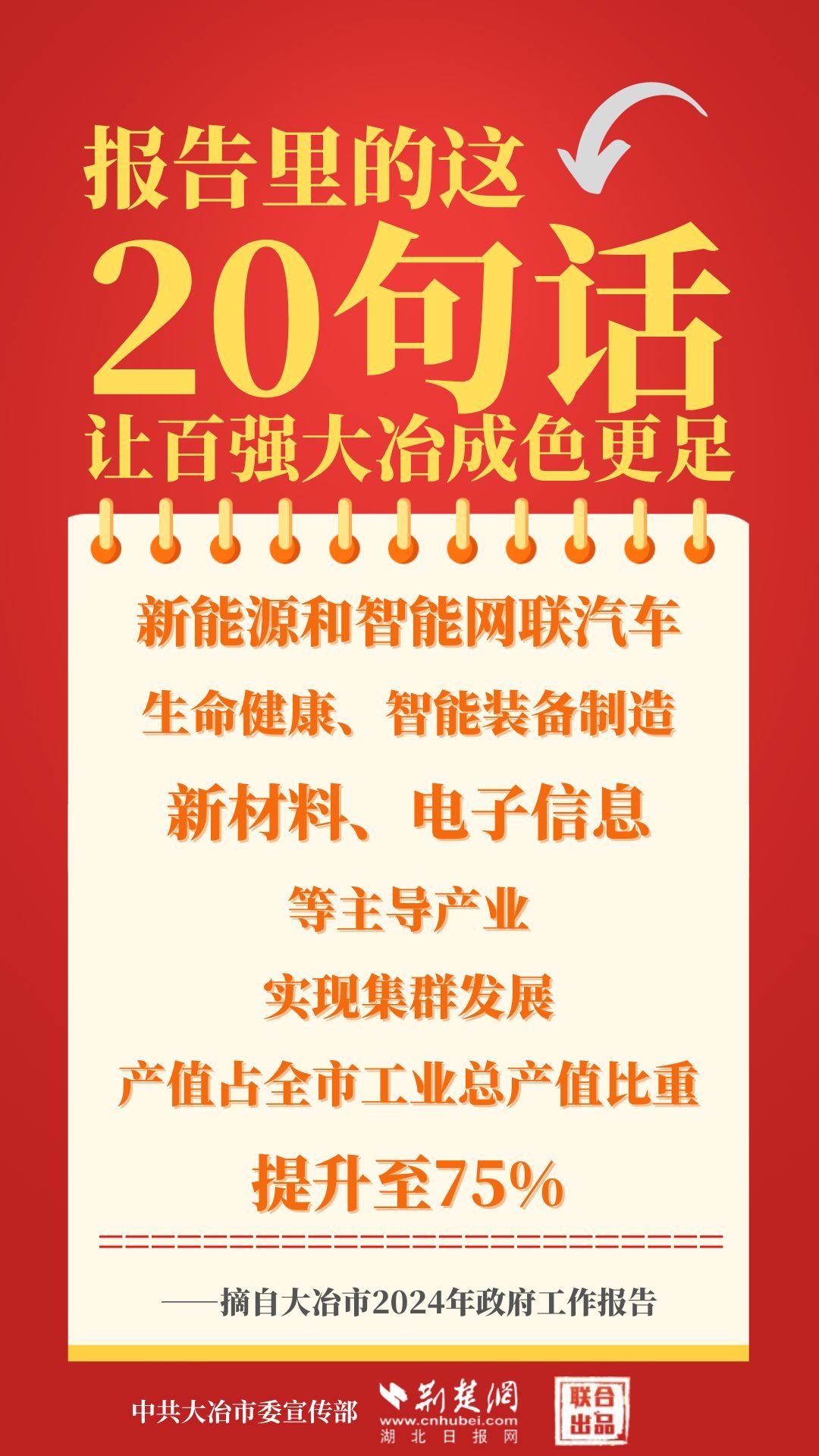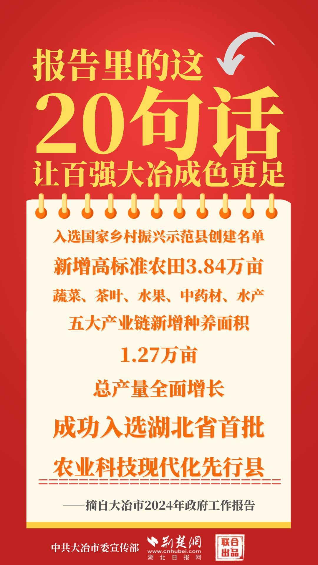 1月12日,大冶市第七屆人民代表大會第四次會議開幕,大冶市委副書記、市長孫輒作政府工作報(bào)告。報(bào)告里的這20句話,讓百強(qiáng)大冶成色更足。