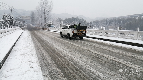 在各重點(diǎn)路段,工作人員迅速設(shè)置提示牌,并及時(shí)砍伐被積雪壓倒的楠竹等樹(shù)木。此外,還通過(guò)人工鏟雪、機(jī)械撒工業(yè)鹽等措施,爭(zhēng)取在最短的時(shí)間內(nèi)搶通受冰雪影響的道路。