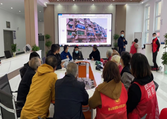 在34棟天面整治項目中,雷山社區(qū)通過“線上+線下”創(chuàng)新共謀方式對居民需求摸底,引導居民參與建言獻策,搭建社區(qū)議事廳-網格驛站-議事點等共謀陣地5處,從居民反映最強烈為主進行開展入戶摸排了解情況。