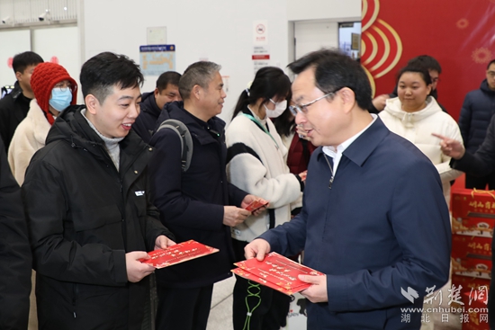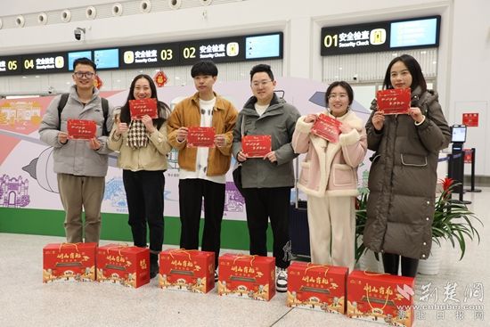 “感謝大家一年來為鄂州發(fā)展作出的貢獻(xiàn),這次通過免費(fèi)送建設(shè)者返鄉(xiāng)等多種舉措,希望能讓大家感受到鄂州這座城市的溫度。”在機(jī)場航站樓一樓大廳,湖北省總工會(huì)領(lǐng)導(dǎo)及鄂州市領(lǐng)導(dǎo)向外來務(wù)工人員代表贈(zèng)送裝有鄂州特產(chǎn)的年貨禮包,并致以誠摯美好的新春祝福。