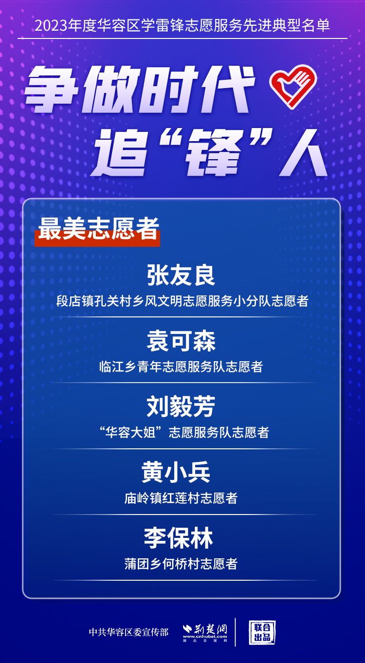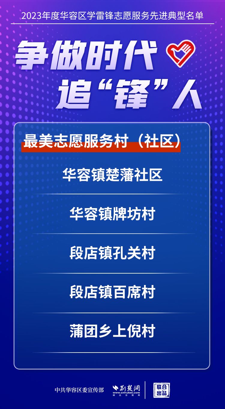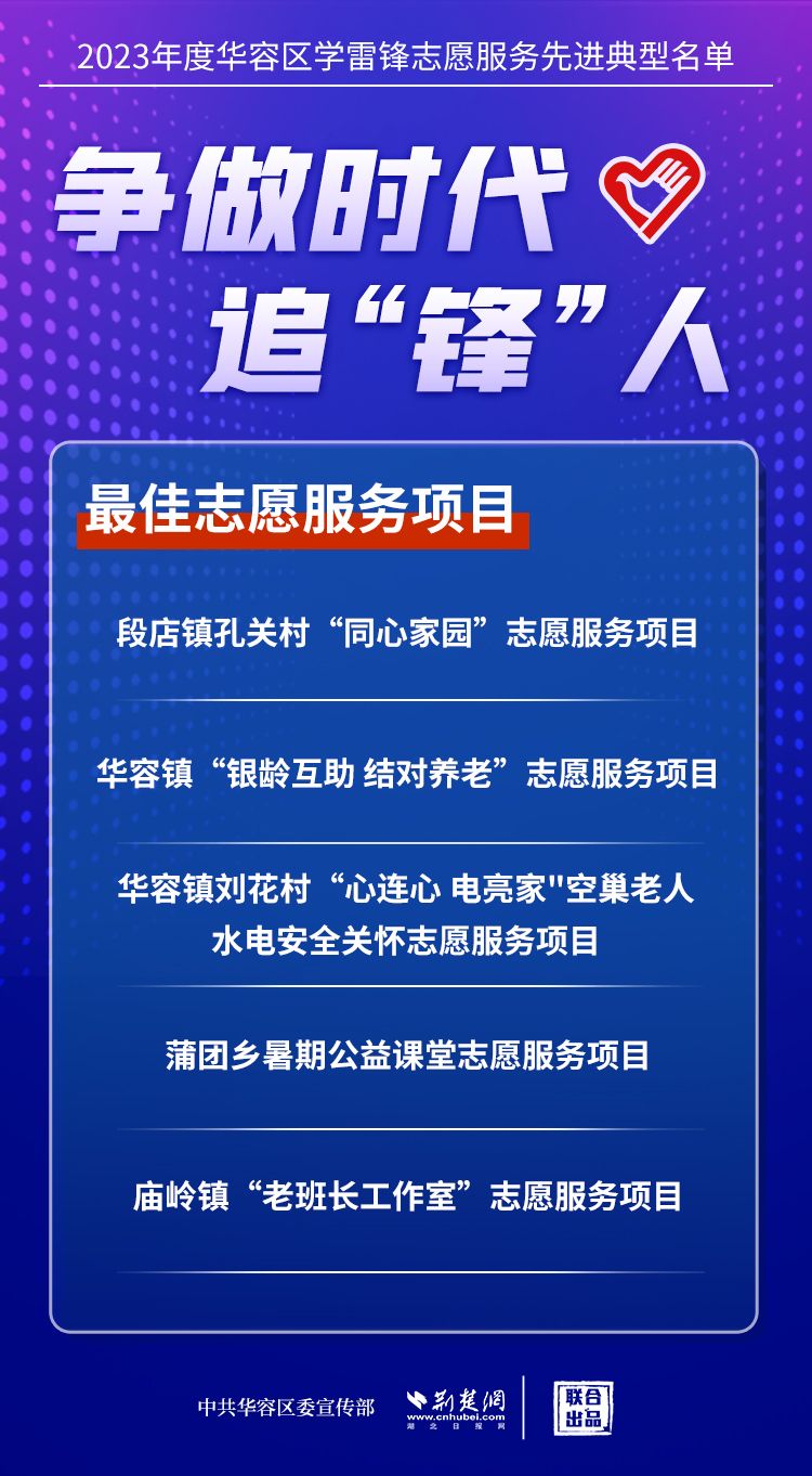 荊楚網(wǎng)(湖北日報網(wǎng))訊(記者王焱堯 通訊員劉佳源)最美志愿者、最佳志愿服務(wù)組織、最佳志愿服務(wù)項目、最美志愿家庭……3月5日,武漢新城展示中心,鄂州市華容區(qū)公布2023年度學(xué)雷鋒志愿服務(wù)先進(jìn)典型名單。