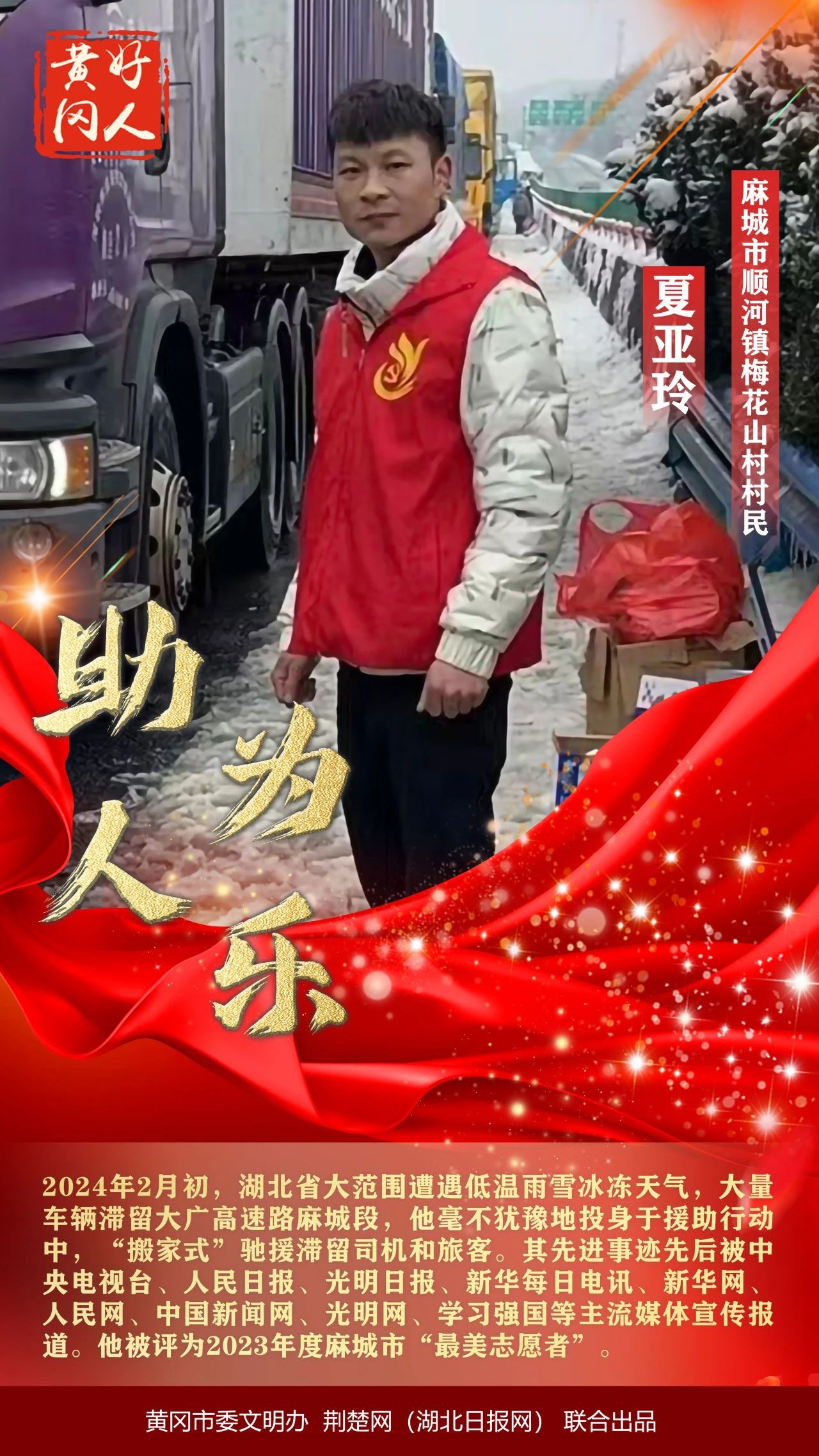 本期“黃岡好人”共有5組好人入選。他們中有風雪中“搬家式”馳援滯留司機和旅客的夏亞玲;有返鄉(xiāng)創(chuàng)業(yè)助力鄉(xiāng)村振興,帶領村民共同致富的楊敬宇;有緊急時刻救助落水兒童的宋利華;有生死時速,徒手破車窗的民警黎剛;有27年無微不至照顧患病妻子的尤國才。