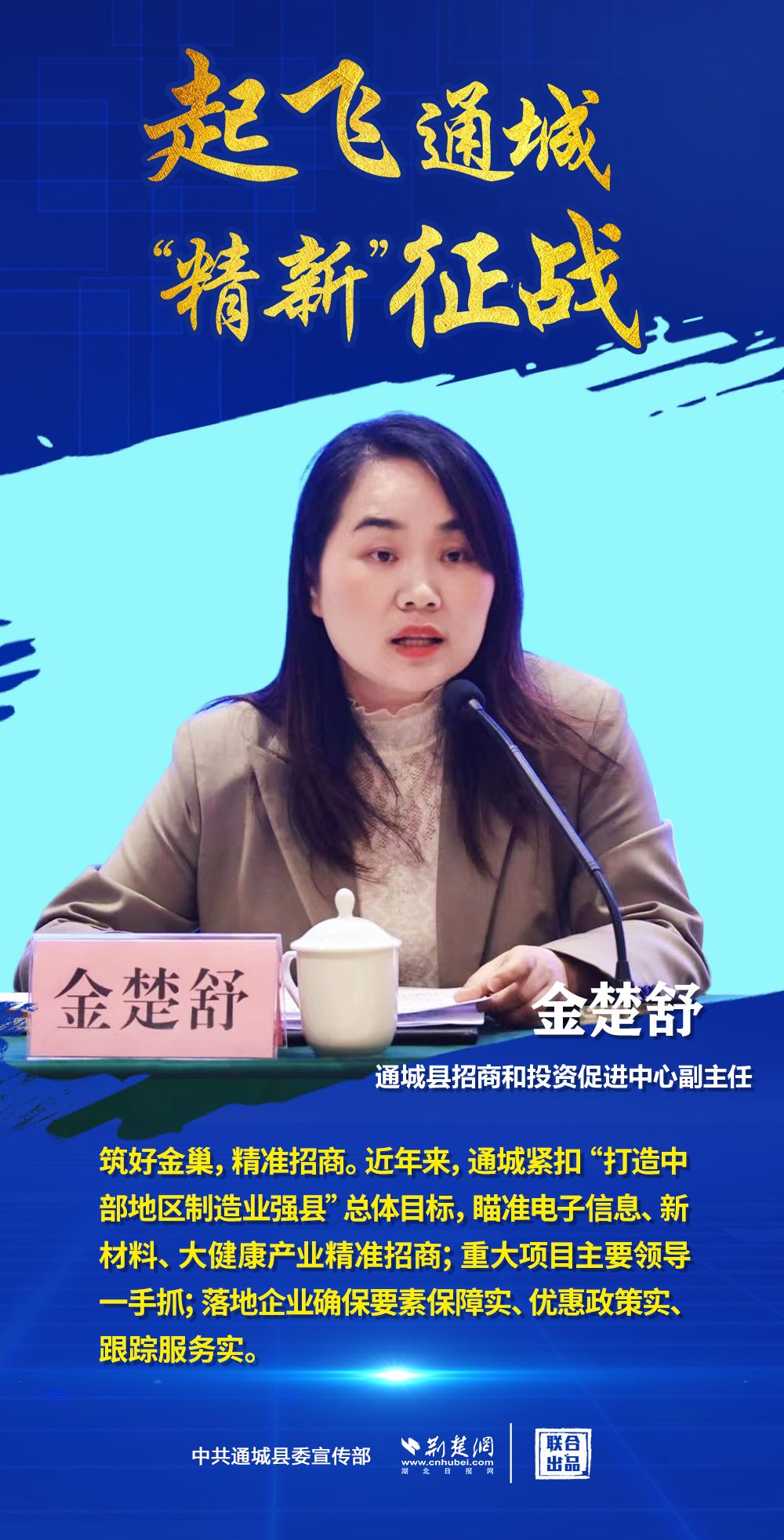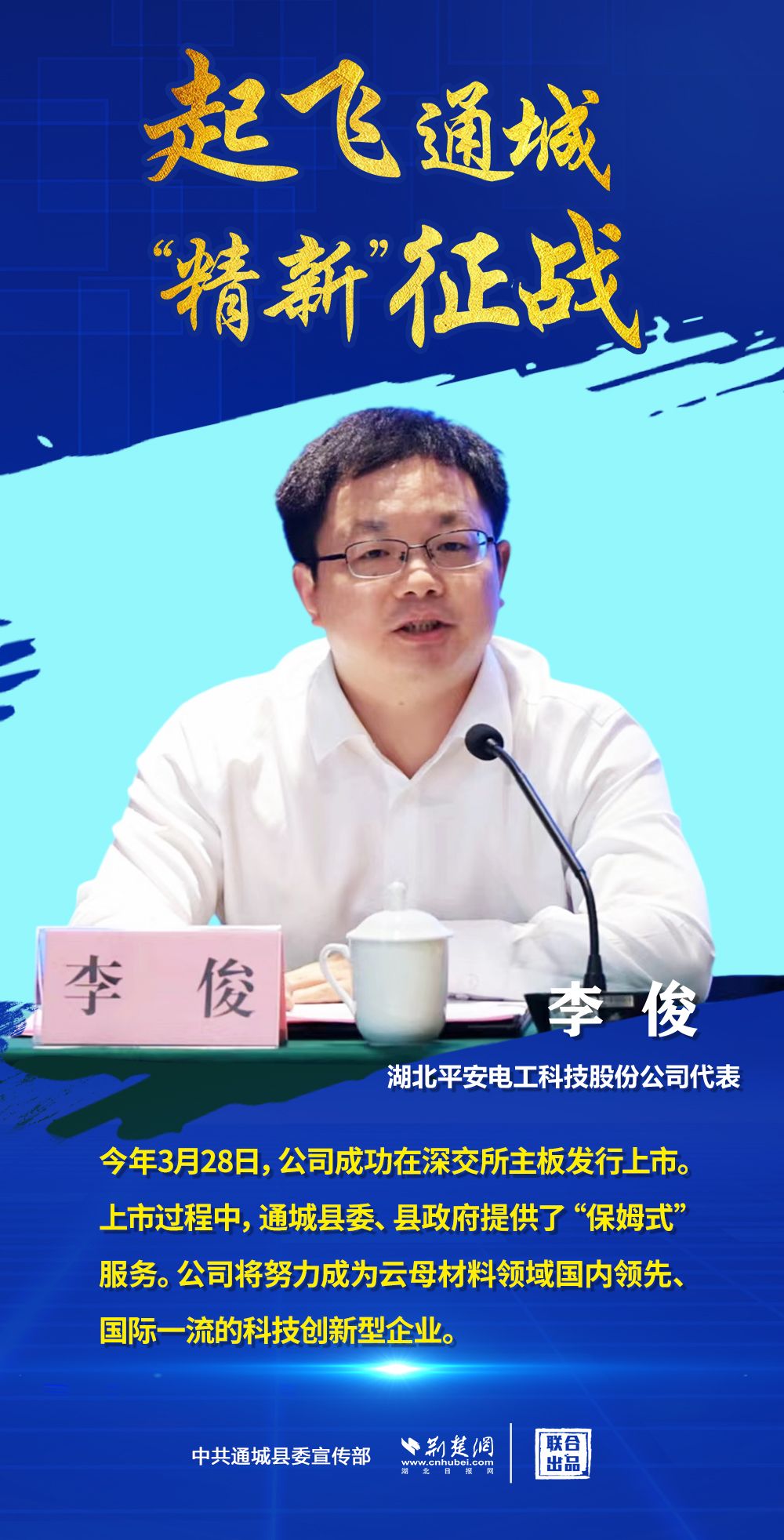 荊楚網(wǎng)(湖北日?qǐng)?bào)網(wǎng))訊(記者 田城 通訊員 毛新民 付婧燁)4月18日,咸寧通城縣委常委、副縣長(zhǎng)王功輝在該縣“專精特新”新聞發(fā)布會(huì)上表示,近年來(lái)該縣在電子信息、新材料、大健康三大優(yōu)勢(shì)產(chǎn)業(yè)發(fā)力,專精特新產(chǎn)業(yè)領(lǐng)域進(jìn)展迅猛。