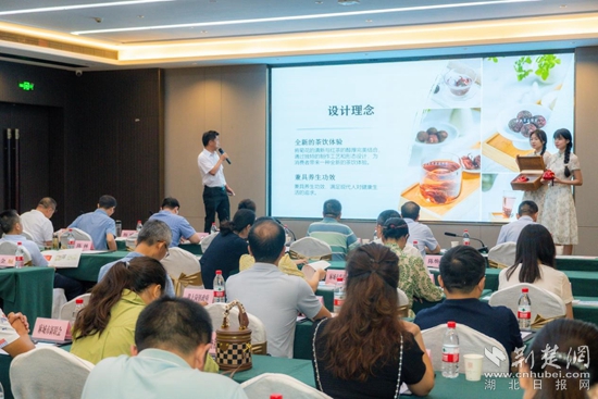 決賽現(xiàn)場,來自廣東、福建、天津、四川等地的20名參賽選手登臺(tái)亮相,通過現(xiàn)場展示講解或視頻展演的方式,全面詮釋了自己作品的設(shè)計(jì)理念和創(chuàng)新點(diǎn)。他們巧妙地將麻城菊花的特色元素融入產(chǎn)品設(shè)計(jì)中,創(chuàng)意十足,為觀眾呈現(xiàn)了一個(gè)充滿新意的菊花產(chǎn)品設(shè)計(jì)世界。