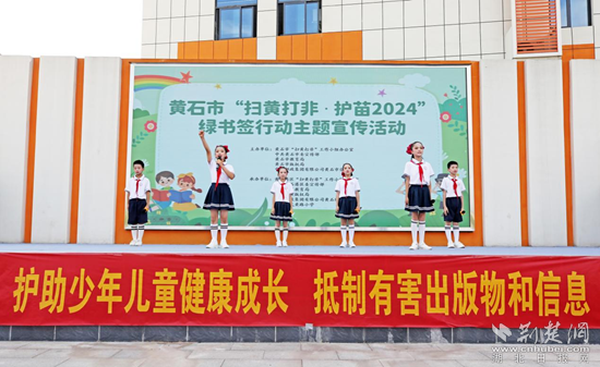 活動現(xiàn)場,黃石港區(qū)委常委、宣傳部部長黃錚宣讀《掃黃打非·護苗倡議書》,號召家長、學(xué)校、政府和社會積極參與“掃黃打非”工作,傳播文明,整治環(huán)境,引領(lǐng)風(fēng)尚,弘揚社會主義核心價值觀,同心協(xié)力營造健康、文明、和諧的社會文化環(huán)境,護助青少年健康成長。倡導(dǎo)廣大學(xué)生綠色閱讀、文明上網(wǎng),學(xué)會拒絕和抵制各類非法出版物和有害信息,自覺遠(yuǎn)離“黃”與“非”,向一切文化垃圾說不!