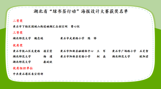 活動期間,現(xiàn)場還公布了黃石市參加2024年湖北省“綠書簽行動”海報設(shè)計大賽優(yōu)秀作品、優(yōu)秀組織單位,并為獲獎單位和代表進行頒獎。