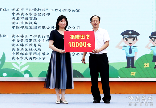 中國郵政集團有限公司黃石城區(qū)分公司副總經(jīng)理柯海平表示,將積極參與“掃黃打非”工作,落實郵政快遞業(yè)“收寄驗視、實名登記、過機安檢”三項制度,加大“畫像法”的宣貫力度,嚴(yán)防非法出版物流入寄遞渠道;積極宣傳“掃黃打非”有關(guān)政策法規(guī),引導(dǎo)告知廣大群眾不得寄遞非法有害出版物,共同助力未成年人健康成長,并向黃石市武黃路小學(xué)捐贈1萬元圖書。
