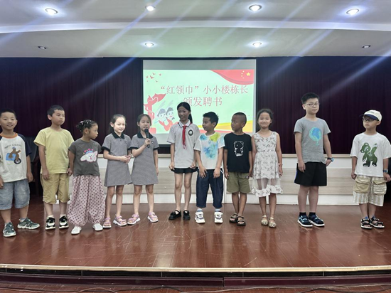 7月3日下午,黃石市黃石港社區(qū)新時(shí)代文明實(shí)踐站聯(lián)合黃石市中山小學(xué),開展紅領(lǐng)巾“小樓長”頒發(fā)聘書儀式活動(dòng),現(xiàn)場62名“小樓長”集中亮相。