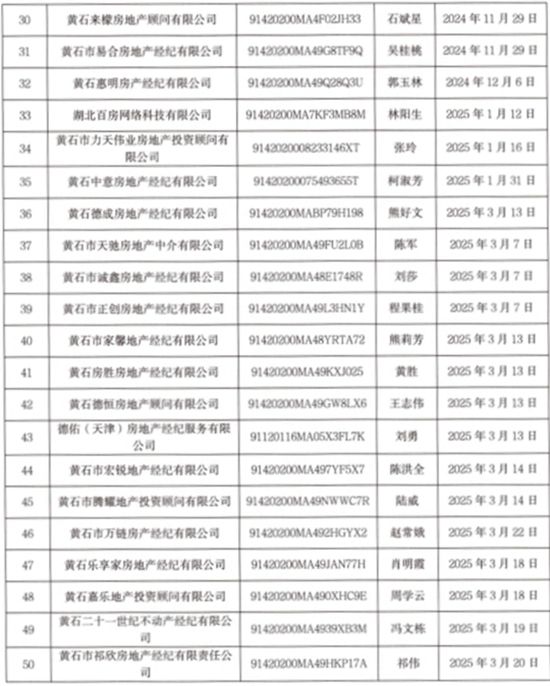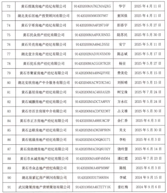 據(jù)悉,今年4月10日,該市共有69家房地產(chǎn)經(jīng)紀(jì)機(jī)構(gòu)成功備案。7月26日,黃石市住房和城市更新局再次印發(fā)文件,公示2024年黃石市城區(qū)91家房地產(chǎn)經(jīng)紀(jì)機(jī)構(gòu)備案情況,進(jìn)一步規(guī)范房地產(chǎn)經(jīng)紀(jì)服務(wù)行為,保障房地產(chǎn)交易雙方當(dāng)事人的合法權(quán)益,維護(hù)房地產(chǎn)市場秩序。