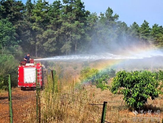 8月21日,當?shù)叵谰仍块T接到種植基地求助,大王鎮(zhèn)30余畝柑橘種植基地干旱缺水,果苗萎蔫嚴重,急需澆灌。在了解情況后,開發(fā)區(qū)·鐵山區(qū)消防救援大隊大王鎮(zhèn)消防救援所立即調(diào)派一輛水罐消防車及5名消防員趕赴種植基地送水,為柑橘苗“解渴”。