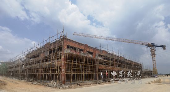 8月26日,咸寧高新區(qū)天府烤鹵施工項目現(xiàn)場,遠(yuǎn)處巨大的場地上,鋼柱林立,刺破蒼穹,渾然列陣。