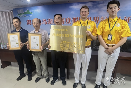 現(xiàn)場(chǎng)頒發(fā)“世界水利風(fēng)景區(qū)中負(fù)氧離子含量最高的景區(qū)”紀(jì)錄證書(shū)該鎮(zhèn)新添一項(xiàng)世界級(jí)榮譽(yù)