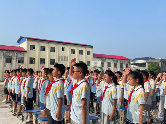 在新學(xué)期的第一次升旗儀式上,太子鎮(zhèn)向前小學(xué)全體師生齊聚操場(chǎng),面向國(guó)旗莊嚴(yán)地行注目禮。隨后,各班主任組織學(xué)生開(kāi)展“開(kāi)學(xué)安全第一課”主題班會(huì)。