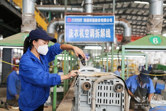 劉國(guó)平介紹,今年1至7月份,包括電視、冰箱、洗衣機(jī)、空調(diào)和電腦在內(nèi)的“四機(jī)一腦”共拆解57.85萬(wàn)套,廢舊汽車回收拆解509臺(tái),小家電拆解6283噸。去年,企業(yè)拆解舊家電超過(guò)100萬(wàn)臺(tái),產(chǎn)出金屬銅3000噸,“相當(dāng)于中色大冶的第五座礦山”。