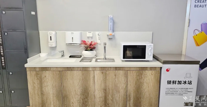 新增智能洗手臺(tái)、直飲水站、擦手紙、手機(jī)放置架、微波爐、取冰臺(tái)等細(xì)節(jié)盡顯貼心。服務(wù)臺(tái)、收銀臺(tái)增設(shè)筷子、勺子、吸管、手套等免費(fèi)服務(wù)便民用具,全方位滿足顧客需求。