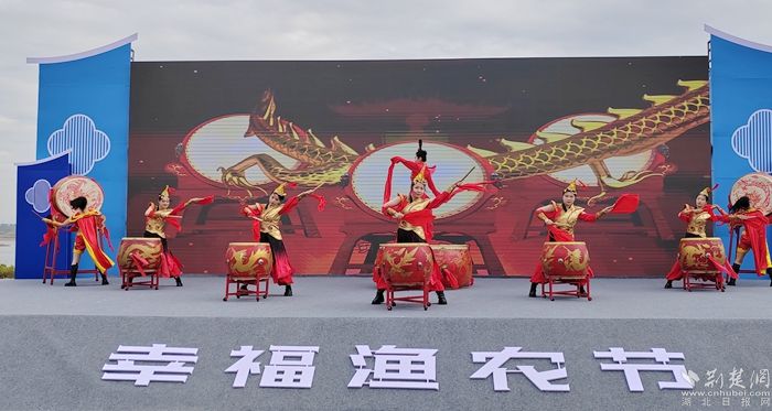 在漁農(nóng)文藝觀(guān)賞區(qū),開(kāi)幕儀式上頒發(fā)了陶店鄉(xiāng)農(nóng)業(yè)發(fā)展顧問(wèn)和電商發(fā)展顧問(wèn)的聘書(shū),并舉行了湖北淼燁生態(tài)農(nóng)業(yè)有限公司巴河魚(yú)丸項(xiàng)目的簽約儀式。舞臺(tái)上,身著統(tǒng)一服裝的表演者們揮舞著鼓槌,敲打著鑼鼓,喜慶的氛圍讓現(xiàn)場(chǎng)觀(guān)眾心潮澎湃,掌聲雷動(dòng)。