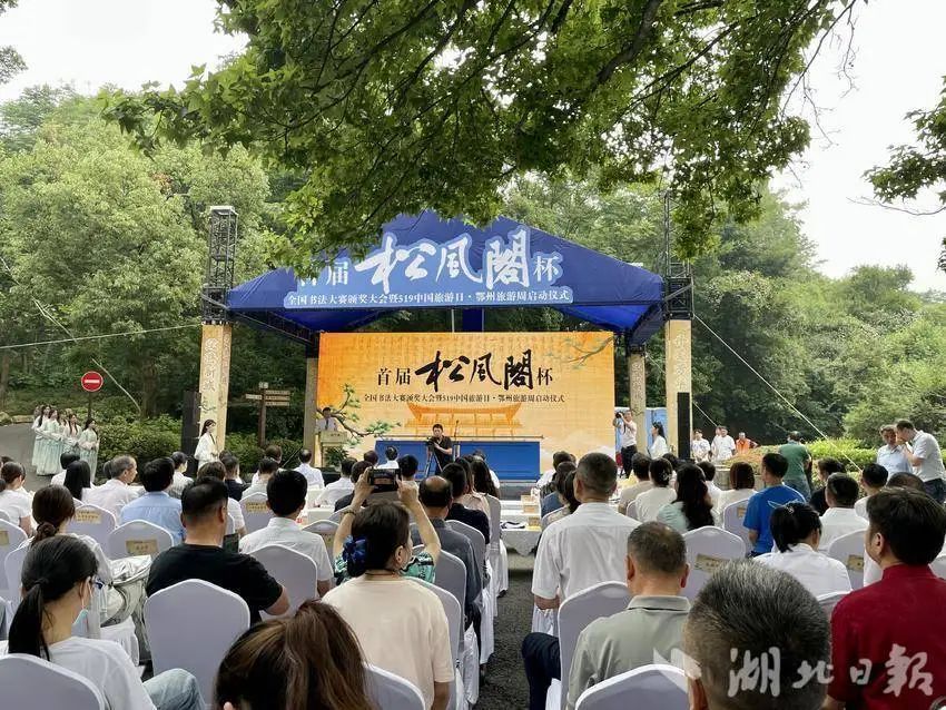 2024年5月19日,中國(guó)旅游日當(dāng)天,首屆“松風(fēng)閣”杯全國(guó)書(shū)法大賽頒獎(jiǎng)大會(huì)在鄂州市西山風(fēng)景區(qū)隆重舉辦,省、市領(lǐng)導(dǎo)為獲獎(jiǎng)代表頒獎(jiǎng)。與此同時(shí),現(xiàn)場(chǎng)邀請(qǐng)專(zhuān)家進(jìn)行了“跨越千年,對(duì)話黃庭堅(jiān)——黃庭堅(jiān)松風(fēng)閣書(shū)法的價(jià)值及對(duì)鄂州文化的塑造”對(duì)話。