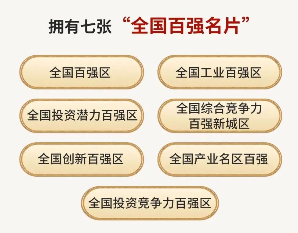首次入選全國(guó)創(chuàng)新百?gòu)?qiáng)區(qū)、全國(guó)產(chǎn)業(yè)名區(qū)百?gòu)?qiáng)、全國(guó)投資競(jìng)爭(zhēng)力百?gòu)?qiáng)區(qū),已擁有七張全國(guó)“百?gòu)?qiáng)名片”。