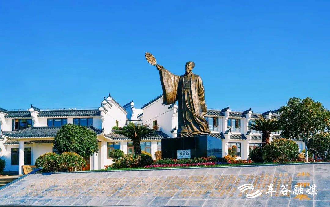 走進(jìn)諸葛城,樹木蔥蘢、河湖密布。清澈如鏡的武侯池邊,諸葛亮塑像峨冠博帶、高舉羽扇,讓人仿佛穿越時空,回到1800年前的赤壁古戰(zhàn)場——