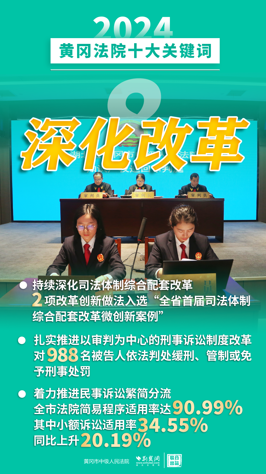 2024年,黃岡法院深入學(xué)習(xí)貫徹黨的二十屆三中全會精神,認(rèn)真落實黨中央決策部署和省委、市委工作要求,忠誠履職、擔(dān)當(dāng)作為,著力護航經(jīng)濟高質(zhì)量發(fā)展、助推社會高效能治理、守護群眾高品質(zhì)生活,各項工作取得新發(fā)展、實現(xiàn)新突破。