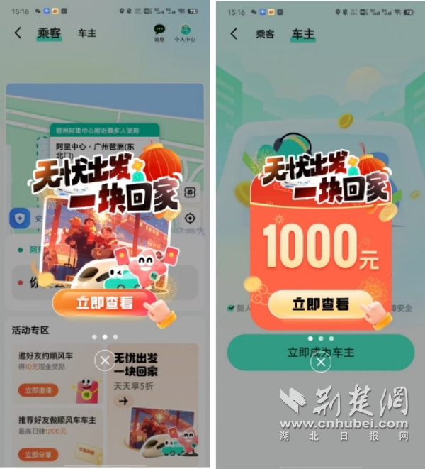 此次針對春運順風車的司乘人群,高德地圖還推出了用車出行福利。注冊成為高德順風車車主,1月17日—2月10日,天天有獎勵,最高可得1000元;而順風車乘客參與領券活動,最高也可省100元,上高德地圖搜索“溫暖回家路”即可參與。