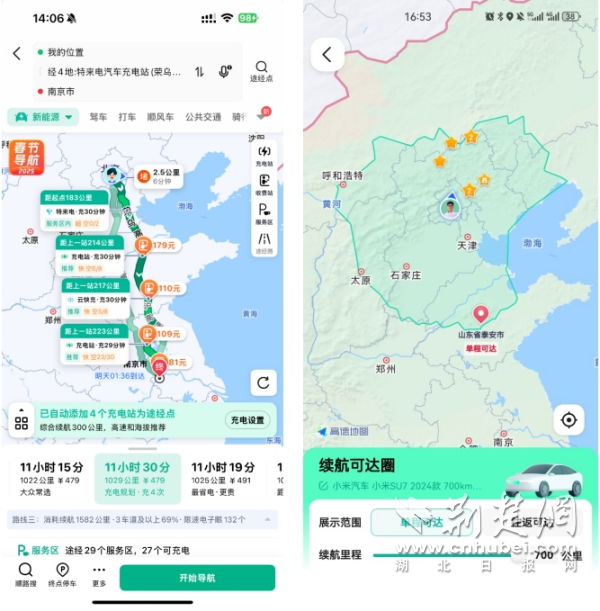 此外,高德充電地圖已覆蓋超過2400萬新能源車主,在線公共站點數(shù)量突破22萬,公共充電站覆蓋率高達98.5%。為新能源車主的春運出行增添更多服務保障。