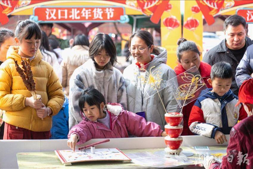 漢口北新春年貨節(jié)在與游客互動(dòng)上做足功夫——除了有舞獅表演、拓印紅包、面塑、糖畫、剪窗花等年味活動(dòng),還有書法名家為客商和市民書寫“私人訂制”春聯(lián)。