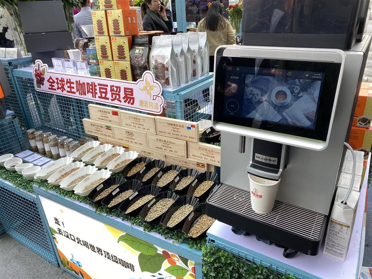 圖為武商夢時(shí)代“國潮好物市集”漢口北國際貿(mào)易城展示的自動(dòng)咖啡機(jī)。(記者劉天縱攝)