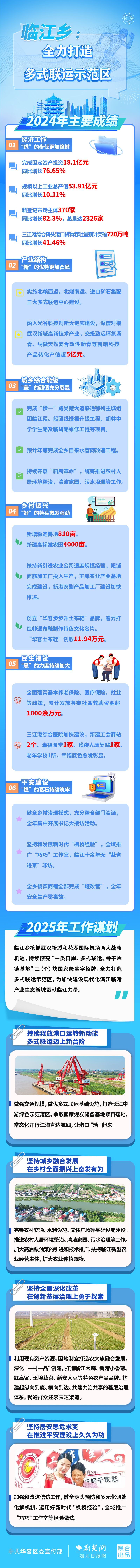 2024年,臨江鄉(xiāng)圍繞打造多式聯(lián)運(yùn)示范區(qū)發(fā)展目標(biāo),全年各項(xiàng)目標(biāo)任務(wù)取得新成效。2025年,臨江鄉(xiāng)如何全力打造多式聯(lián)運(yùn)示范區(qū)?荊楚網(wǎng)(湖北日?qǐng)?bào)網(wǎng))帶您一圖速覽。